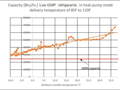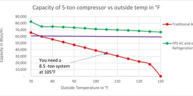Our systems retain 100% capacity as an AC unit. No need to oversize system for high temperature
